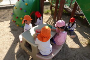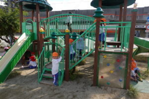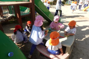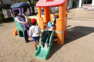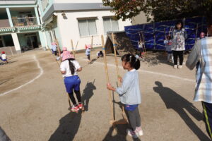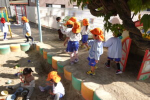 2025.11.6 今日の園庭では 今日も良いお天気だったのでお庭で遊ぶのもとっても良い条件でしたね。暑くもなく寒くもなくとっても活動的に動いていました。やっぱり挑戦したいこといつもやってることなどなど今日も全開でした。